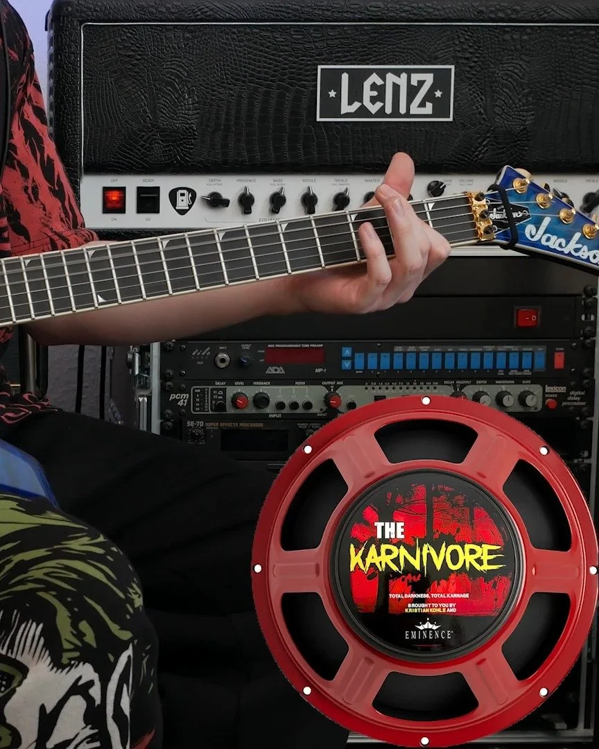 First recording test with the amazing @eminence_speaker KARNIVORE! @kohlekellerstudio nailed it with this collaboration! The amp I'm playing here is the 2nd 3-channel prototype based on my Octane circuit. You can hear the first prototype on the new Megadeth album!